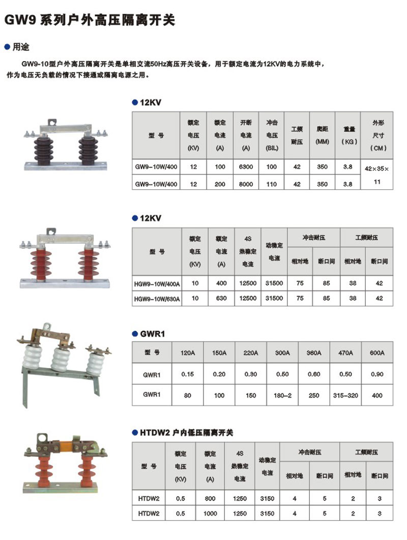 GW9-12/200,400,600,800,1000A户外高压隔离开关