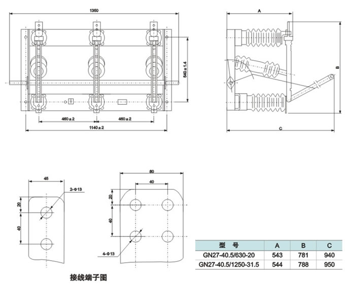 GN27-40.5|GN27-40.5D/630,1250A户内高压隔离开关