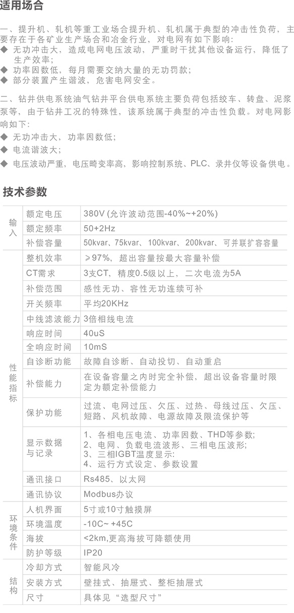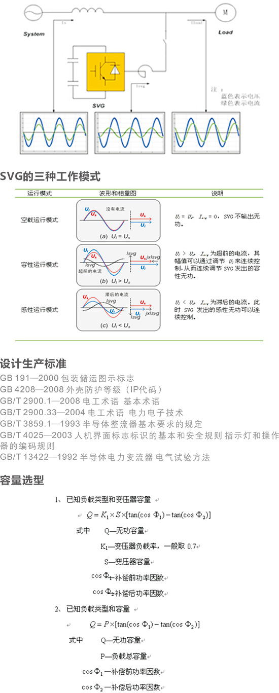 产品简介 WZSVG静止无功发生器(又称SVG)的基本原理是将自换相桥式电 路通过电抗器直接并联在电网上,适当地调节桥式电路交流侧输出电 压的相位和幅值或者直接控制其交流侧电流,就可以使该电路发出满 足要求的无功电流,实现动态无功补偿的目的。